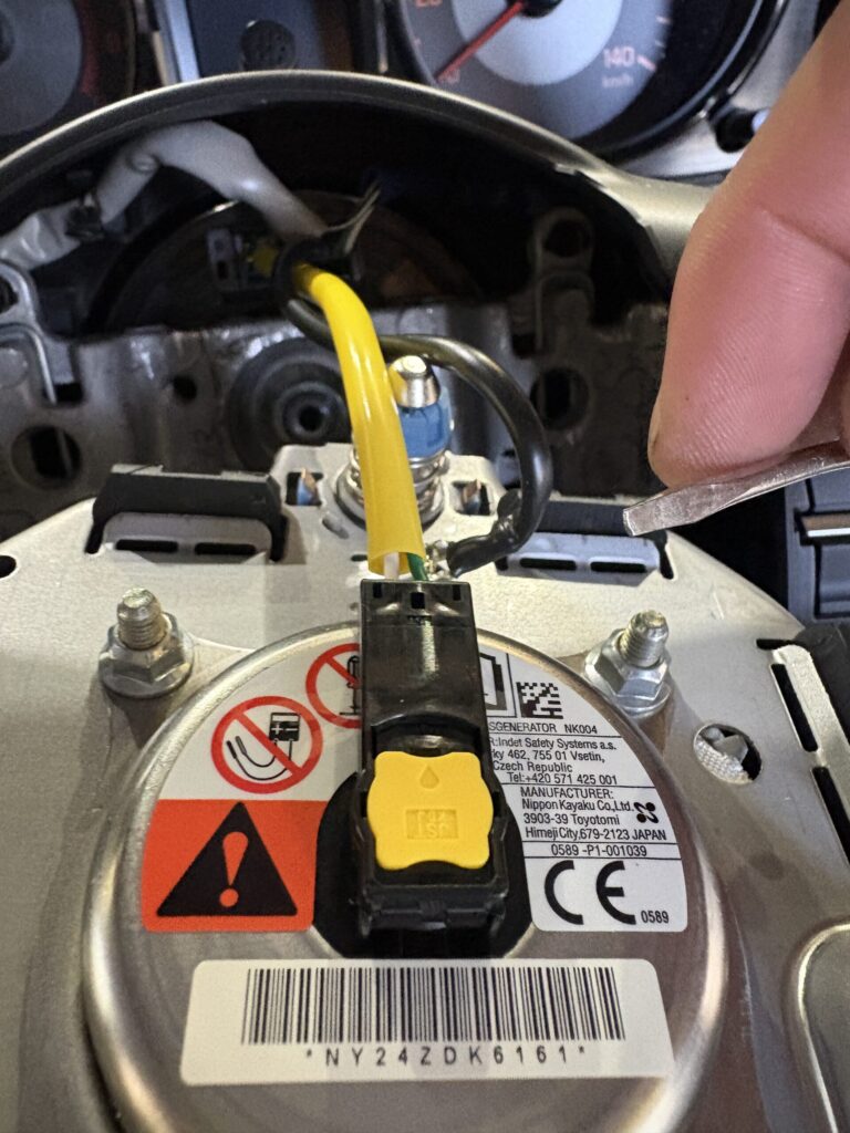 外したら、エアバックのカプラーとホーンのマイナス配線を外して行きます!