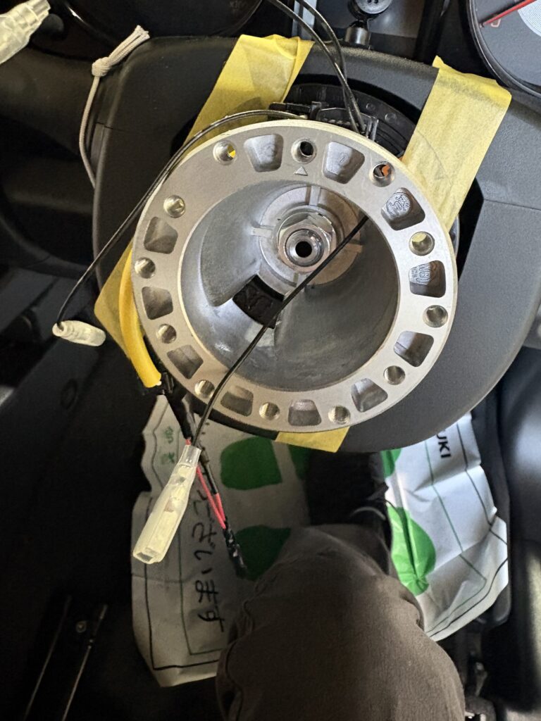 令和7年登録の新古車をとある中古車やでご購入とのことでしたのでハンドルハブの適合がわからないとのことで、ハンドルだけ持ち込んでもらいハンドルハブは当社で注文いただきました!