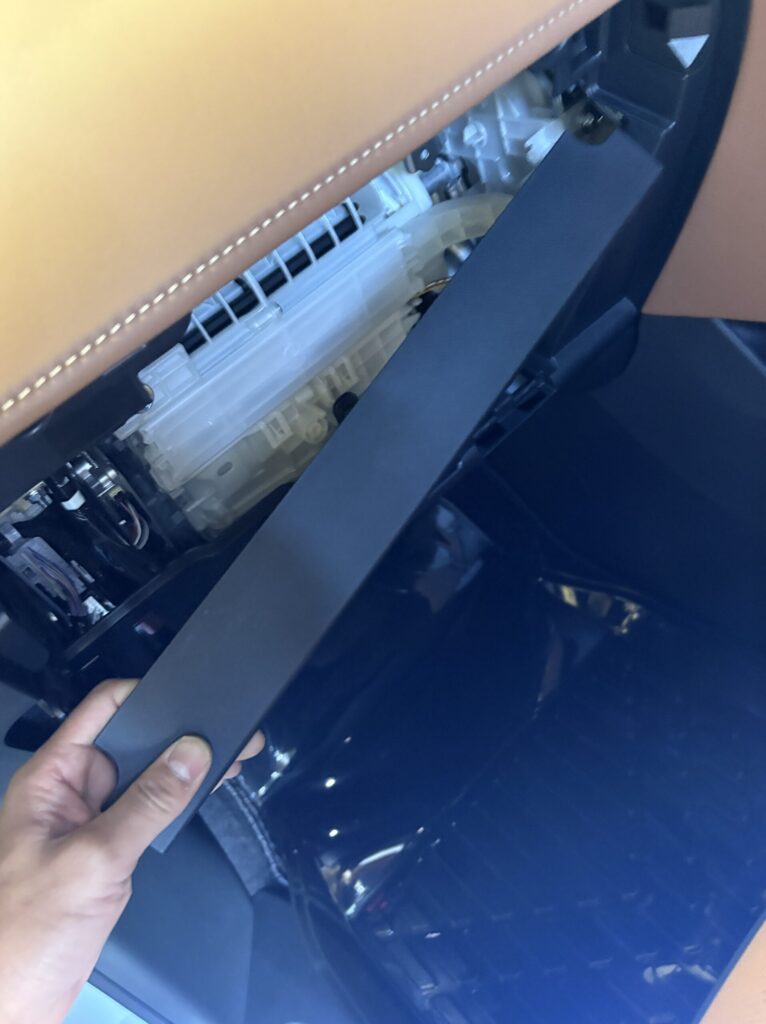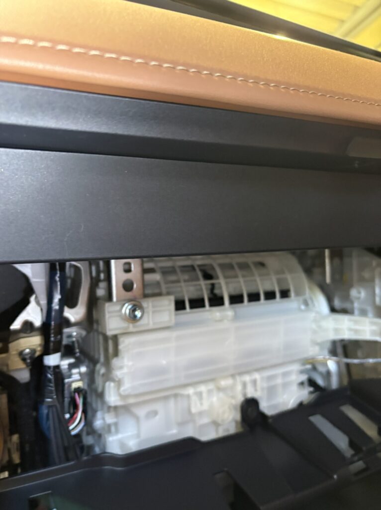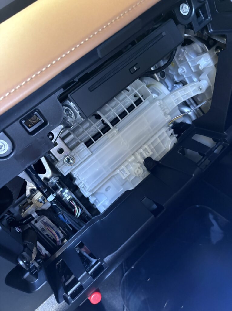 次にグローブボックスを外して行きます。(二人で同時作業をしてますのでサイドトリムがまだ外れていませんがご了承ください。)