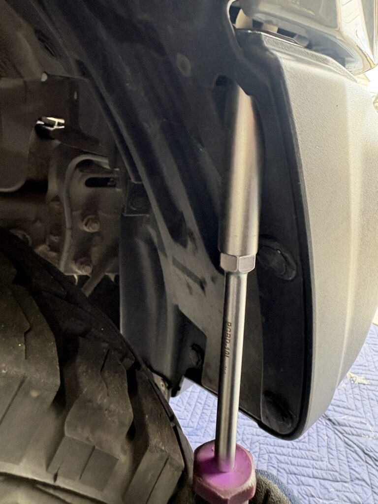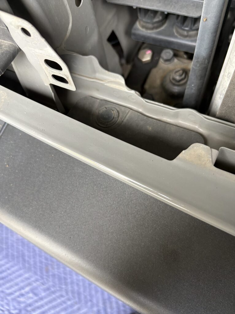 あとは下側に見えてる4か所の10mmのボルトと。左右インナーライナーの先端にあるボルトを外します。