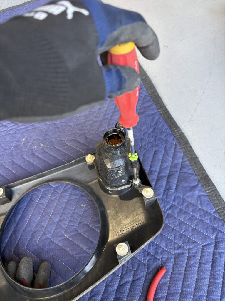 ぐりる下部のファスナーをドライバーで45度回して外します。