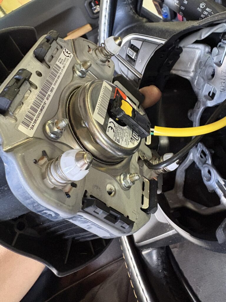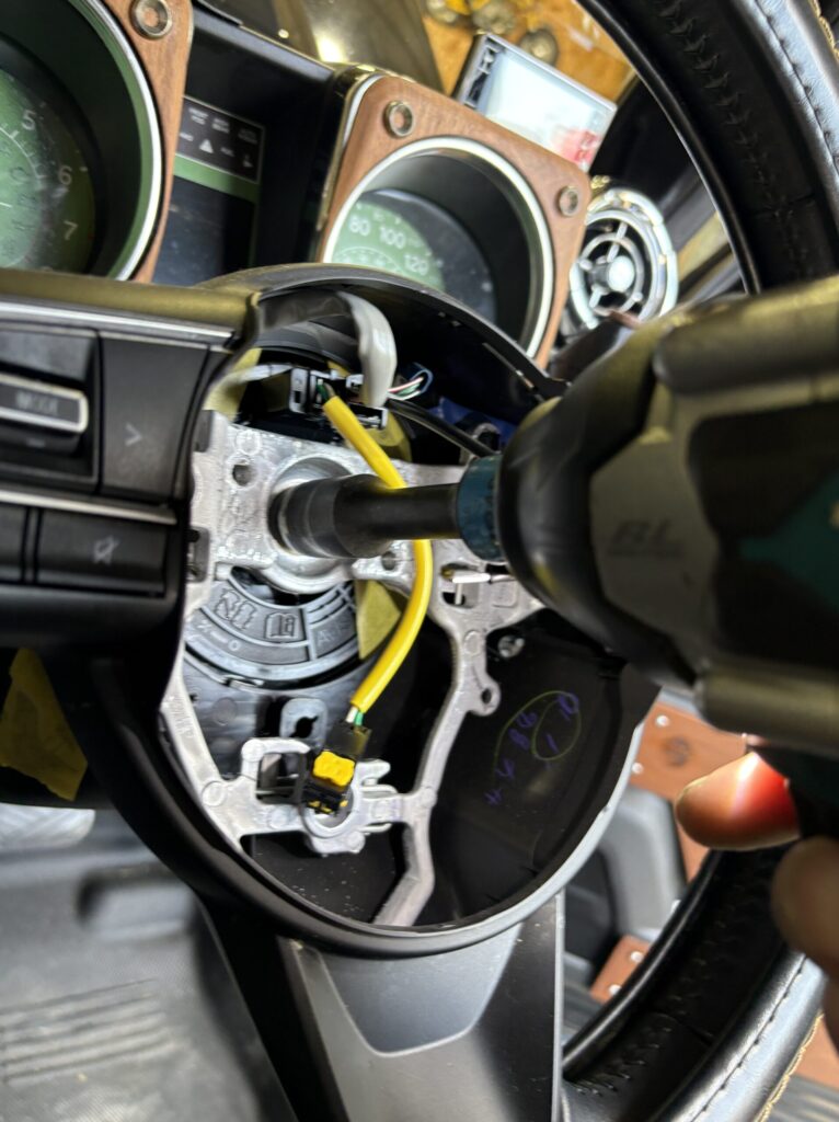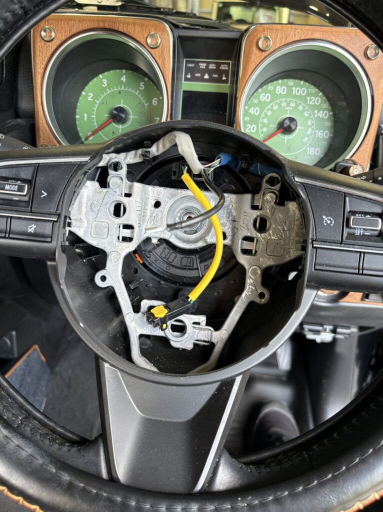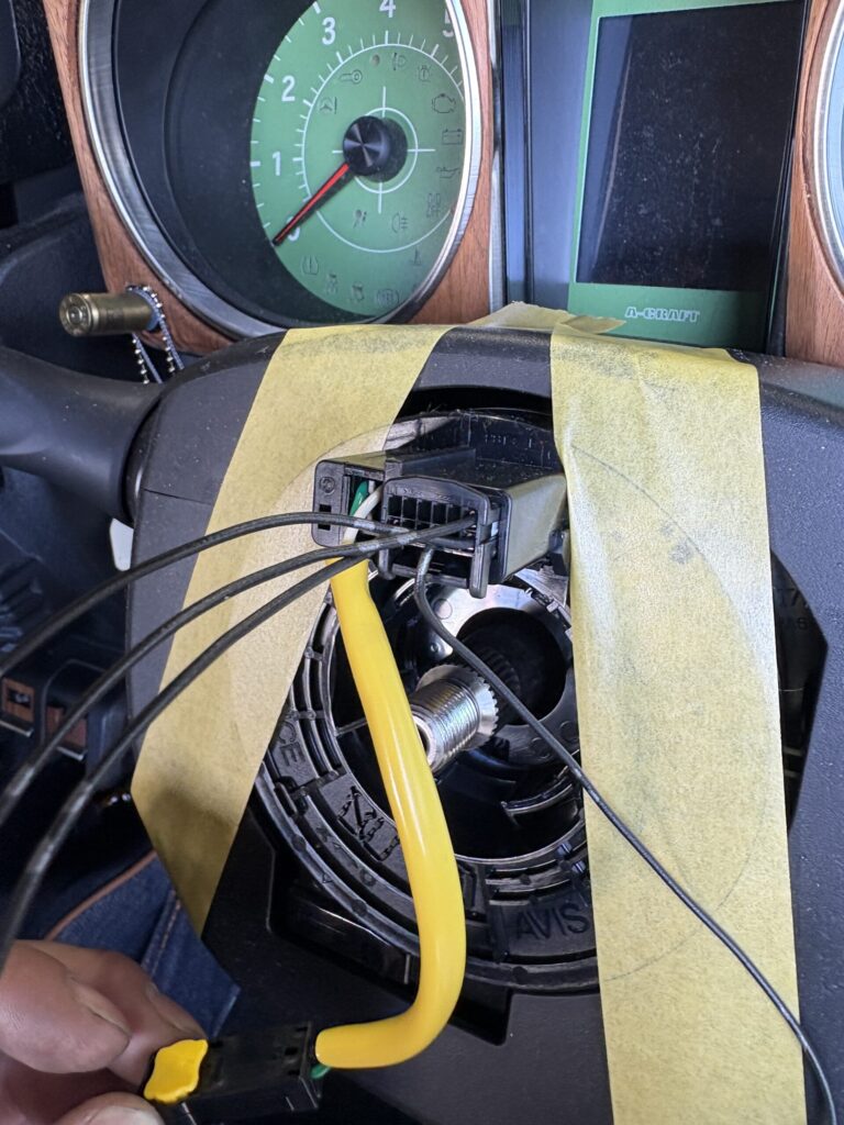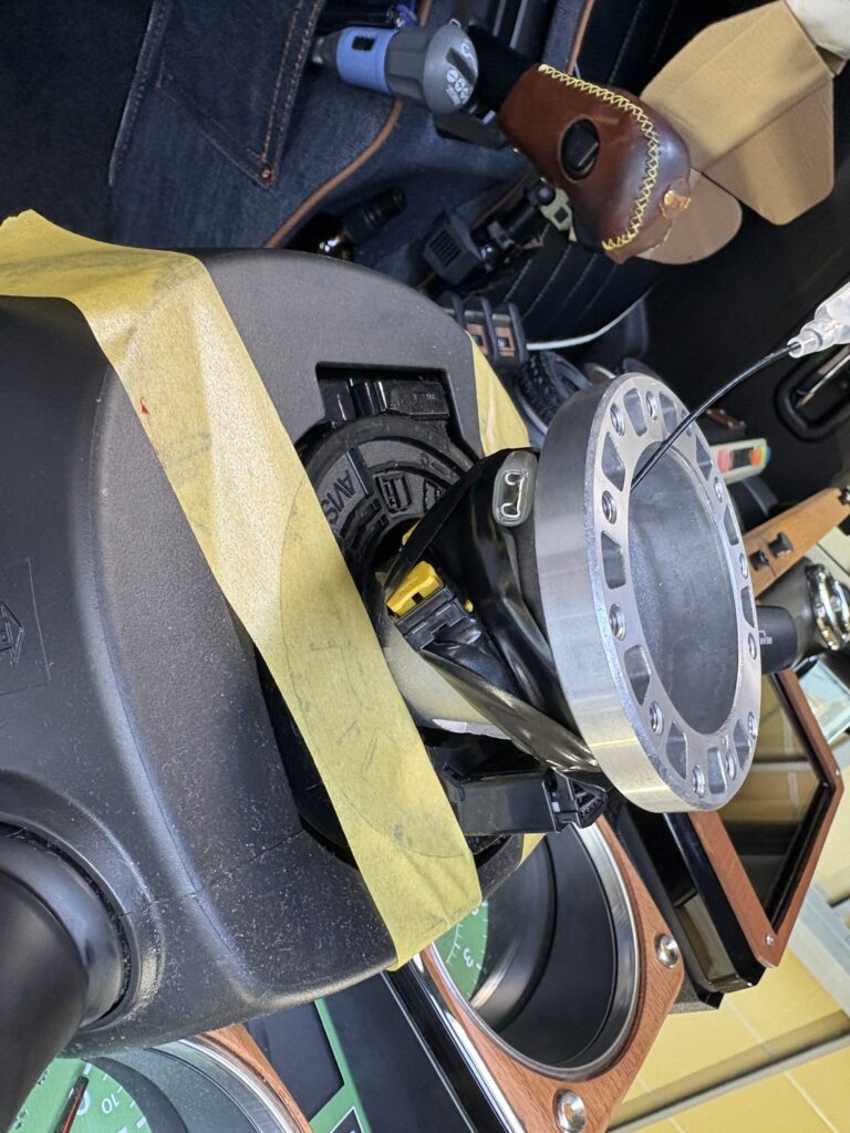 ステアリングリモコンのカプラーを外して…スパイラルケーブルを固定して行きます!
